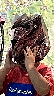 | 段ボールで作られた恐竜のかぶりもの 「かぶ〜るくん」。